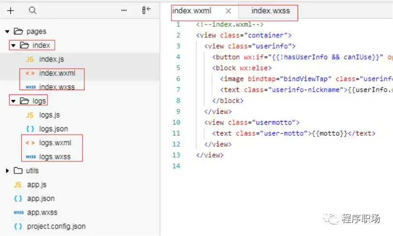 主要有两块:wxml和wxss