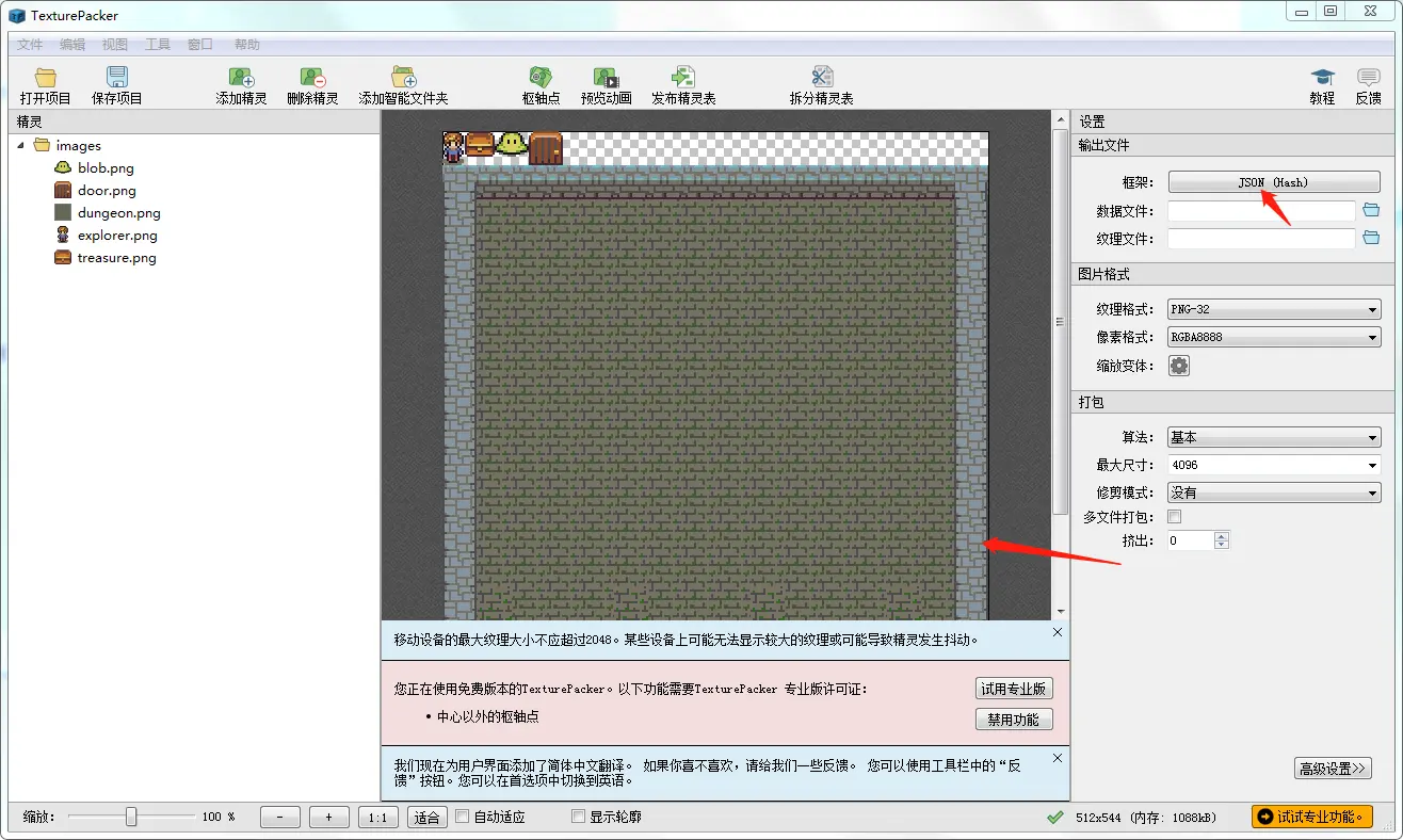 3.从纹理图集(一个JSON文件,在雪碧图中定义图片大小和位置)。