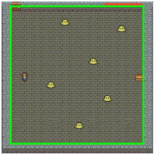 但是,新功能是探险者的动作被包含在地牢的墙壁内。绿色轮廓线显示了探险者运动的极限。