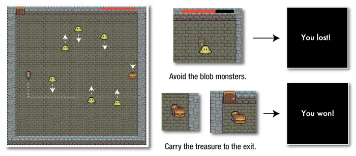 你将看到如何在前面的代码中使用碰撞返回值,以使Blob怪物在上层和下层地下城墙之间来回反弹。