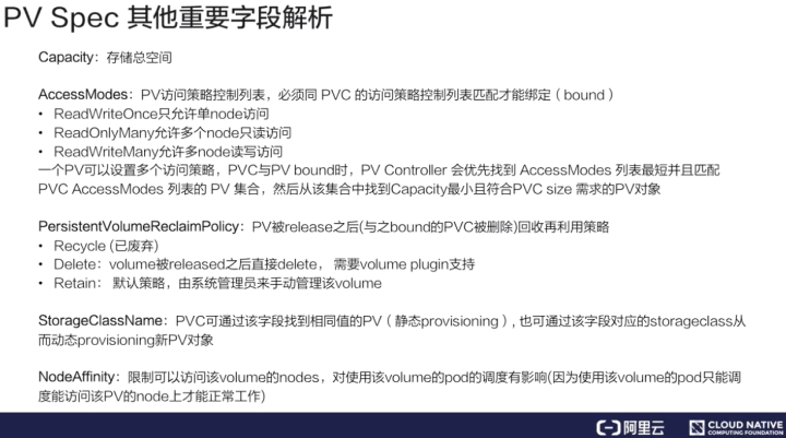 接下来,我们讲解一下 PV 的一些重要字段: