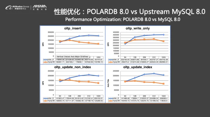 官方MySQL向8.0版本演进时过于重视高配机型的适配,而忽略了小型机的性能。而云上用户大部分还是用的8核、16核的小型机,因此使用MySQL8.0的性能会发生退化。因此,阿里云POLARDB数据库针对于这个问题进行了一系列优化。