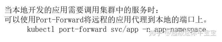 它的使用方式是 kubectl port-forward,然后 service 加上远程的 service name,再加上相应的 namespace,后面还可以加上一些额外的参数,比如说端口的一个映射,通过这种机制就可以把远程的一个应用代理到本地的端口之上,此时通过访问本地端口就可以访问远程的服务。