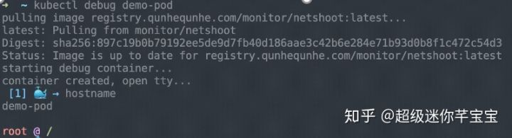 像这个例子里面,去查看类似像 hostname、进程、netstat 等等,这些其实都是和这个需要 debug 的 pod 是在同一个环境里面的,所以你之前这三条命令可以看到里面相关的信息。