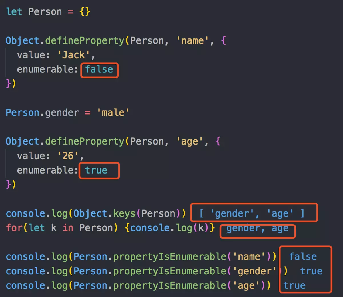 - enumerable 描述属性是否会出现在for in 或者 Object.keys()的遍历中
