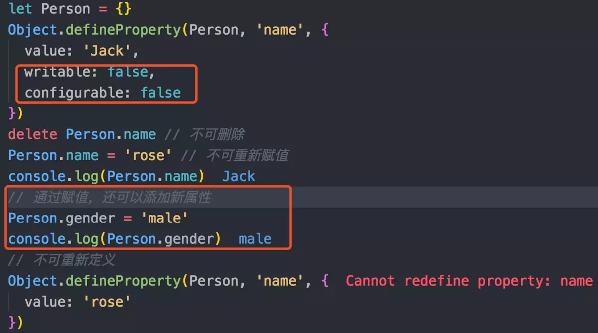 所以, 密封之后不仅不能添加新属性,也不能重新配置或者删除任何现有属性(虽然可以改属性的值)
