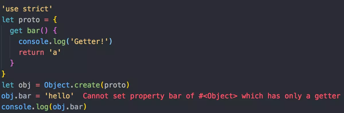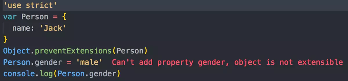 在非严格模式下,创建属性gender会静默失败,在严格模式下,将会抛出异常。