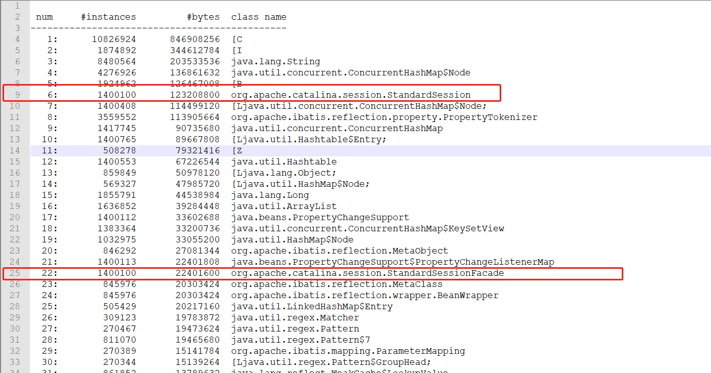 这里发现 StandardSession 实例竟然有140万个。StandardSession 是tomcat的Session的具体实现,难道说Tomcat发生了内存泄露了。