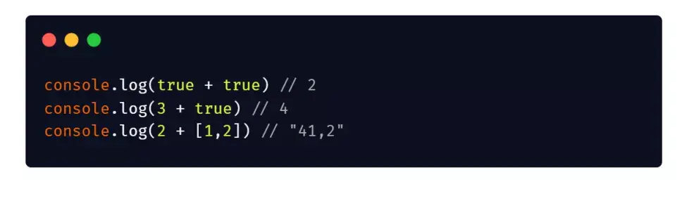 其他算术运算符(比如减法、除法和乘法)都不会发生重载。它们的规则是:所有运算子一律转为数值,再进行相应的数学运算。
