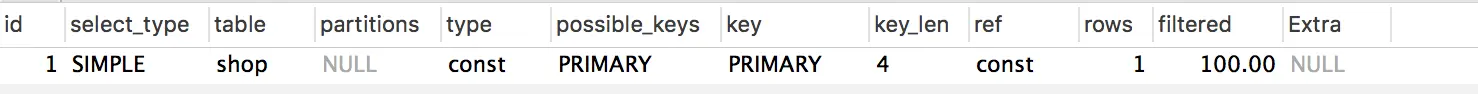 | extra | 其他信息,如使用了索引、使用了文件排序等等 |