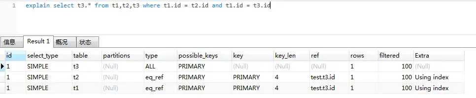 通过上述方式即可获得查看你的sql的执行计划。你会获得例如这样的结果: