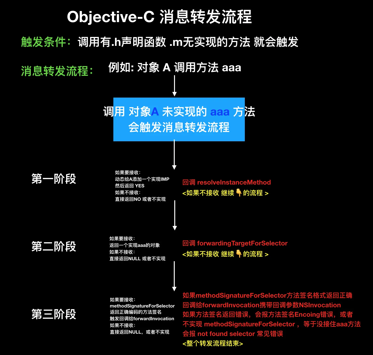 开发iOS应用的小伙伴对消息转发机制肯定是再熟悉不过了,尤其是之前OC语言的年代。 下面就好好整理下消息转发。