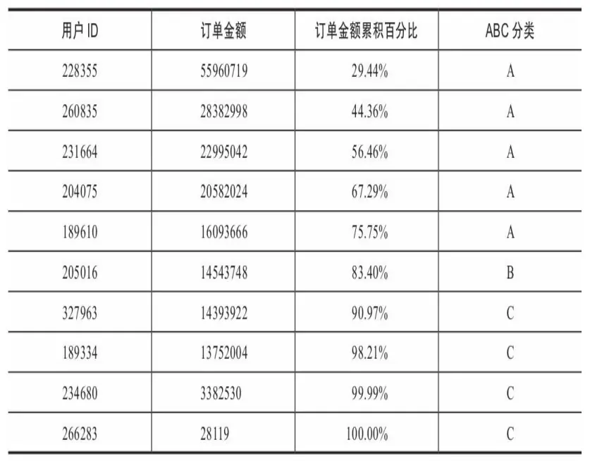 下面以示例数据说明如何使用ABC分类法对会员做细分。
