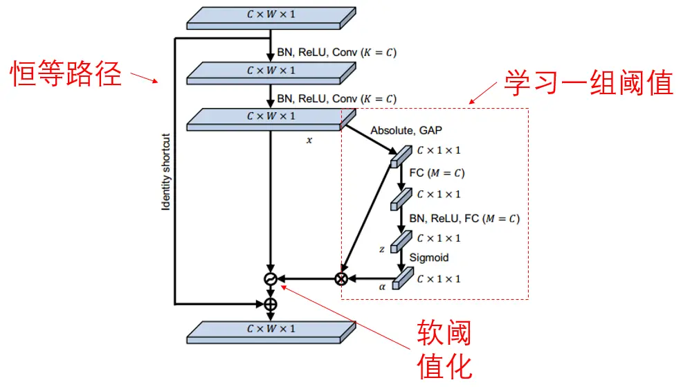 为了提高强噪声下深度学习算法的特征学习能力,深度残差收缩网络(Deep Residual Shrinkage Network)将软阈值化作为可训练的非线性层,嵌入到深度残差网络(Deep Residual Network,ResNet)之中。