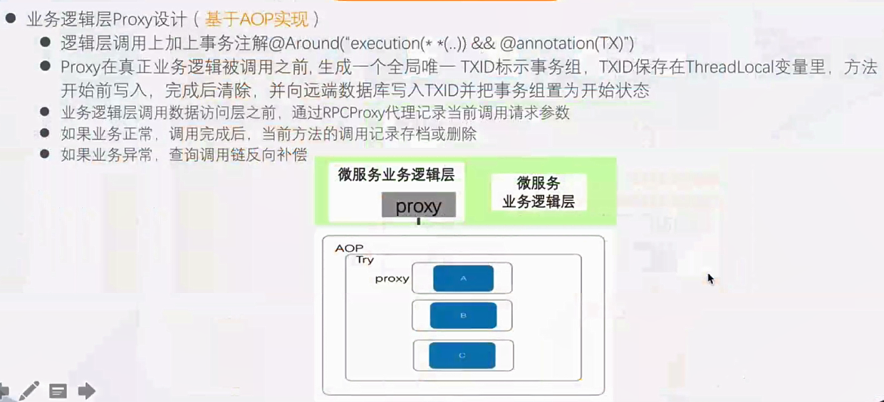 - proxy 需要将A的调用参数记在自己本地TDB,相应的还有B和C,然后开始分别调用A、B、C的事务。
