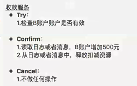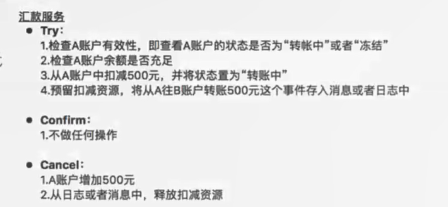 是否try阶段预留的业务资源,回滚汇款服务、收款服务案例 A用户向B用户汇款500块钱。