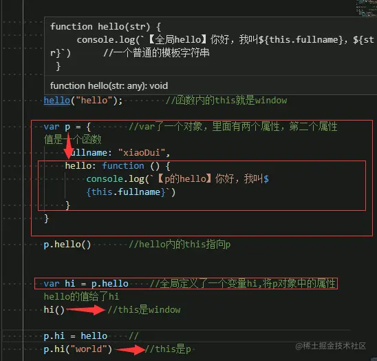 p.hi("world") //this就是p