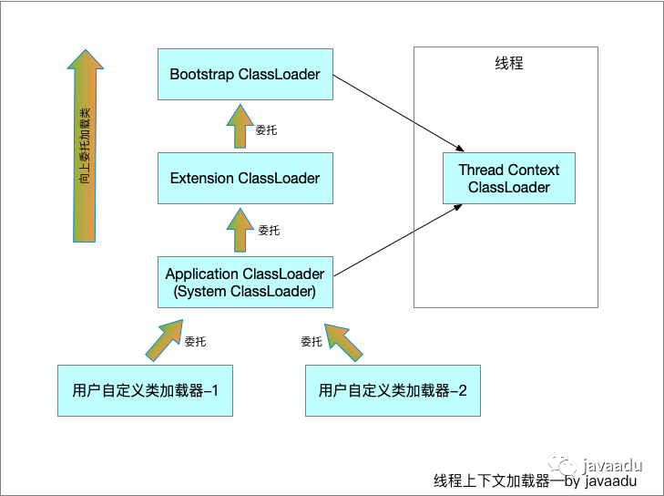 线程上下文加载器如上所述,双亲委派模型很好得解决了各个类加载器的基础类的统一问题(越基础的类由越上层的加载器进行加载),如果基础类又要回调用户的类该怎么办?一个非常经典的例子就是SQL的驱动管理类——java.sql.DriverManager。