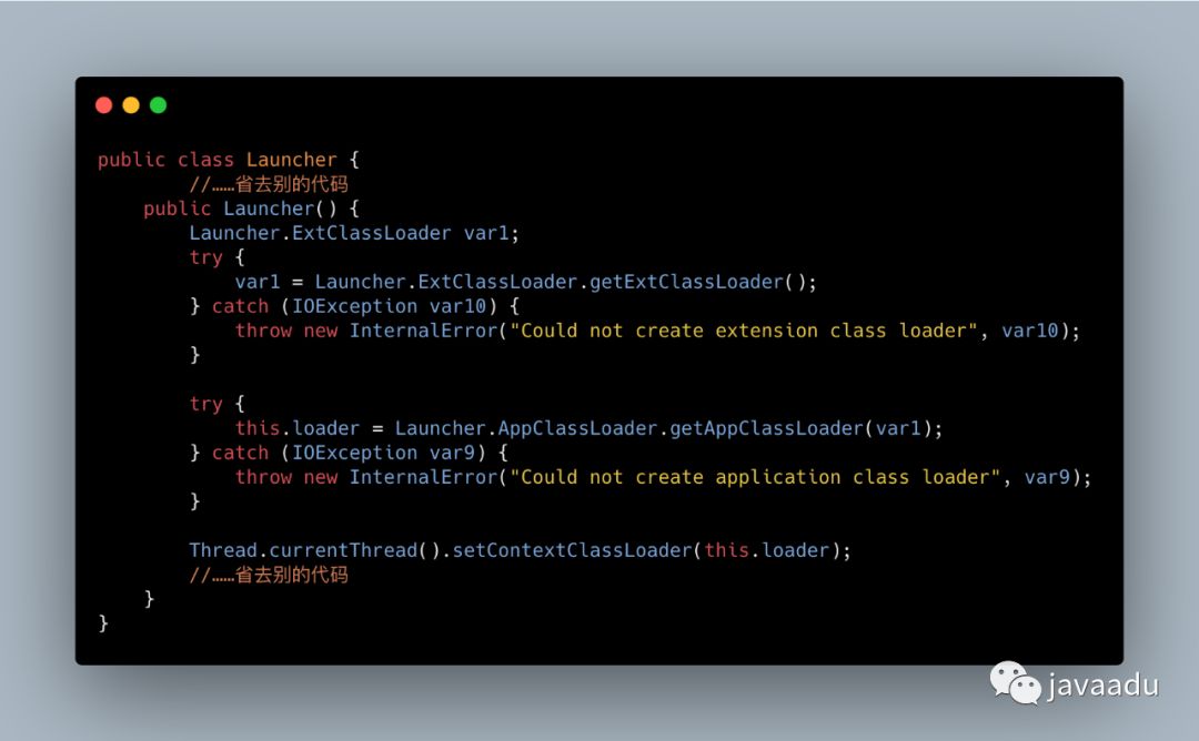 看下setContextClassLoader()方法别谁调用了,最终我们在Launcher中找到了如下代码: