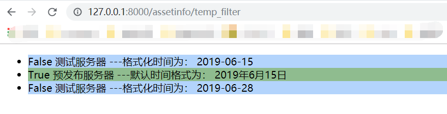 3)在templates/assetinfo/temp_filter.html中,使用自定义过滤器。