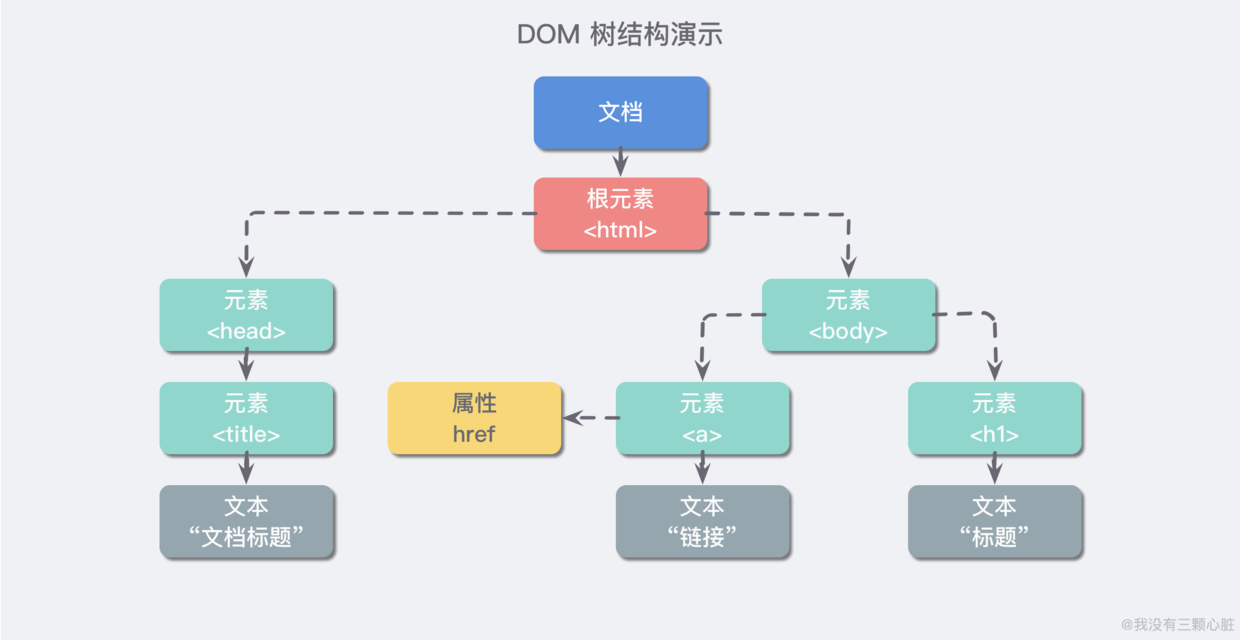 这里不对 DOM 节点的类型啊方法之类的进行讨论,我们只需要对 DOM 有一个大致的概念就好了。