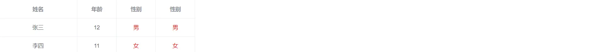 <span style="color: red">{scope.row.sex === 0 ? '男' : '女'}</span>