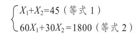 - 步骤2:60(45-X2)+30X2=1800