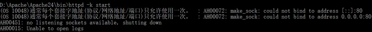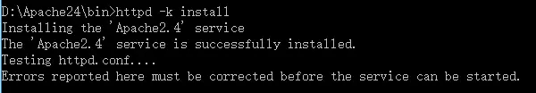httpd -k install - 安装成功,启动服务器:httpd -k start