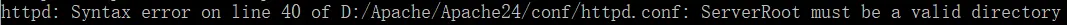 Define SRVROOT "D:\Apache\Apache24"