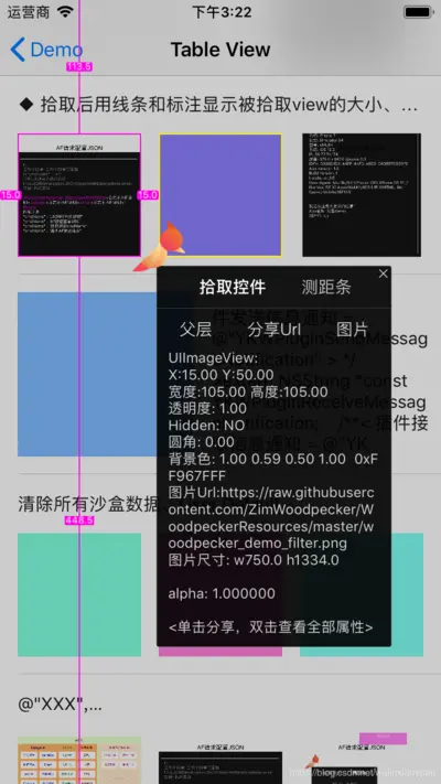 Tips:双击可以拾取下一层控件。三指点击可以切换不同的拾取模式,跳过哪些不响应点击的控件。