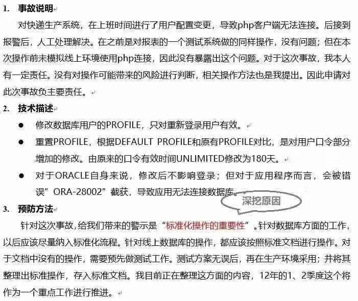 人为故障占有不小的比例。要通过及时沟通并查看历史记录,确认操作是否有误、要和其他团队沟通是否有特殊操作。当然,解决人为故障最好的方法还是将数据库运维自动化、标准化、规范化。