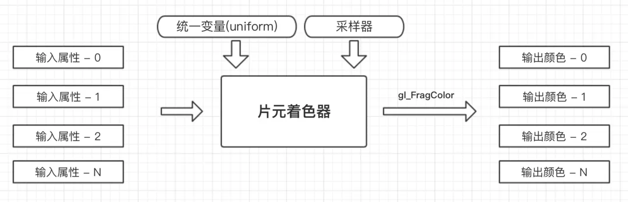 着色器程序 -- 描述片段上执行操作的片元着色器程序源代码/可执行文件。