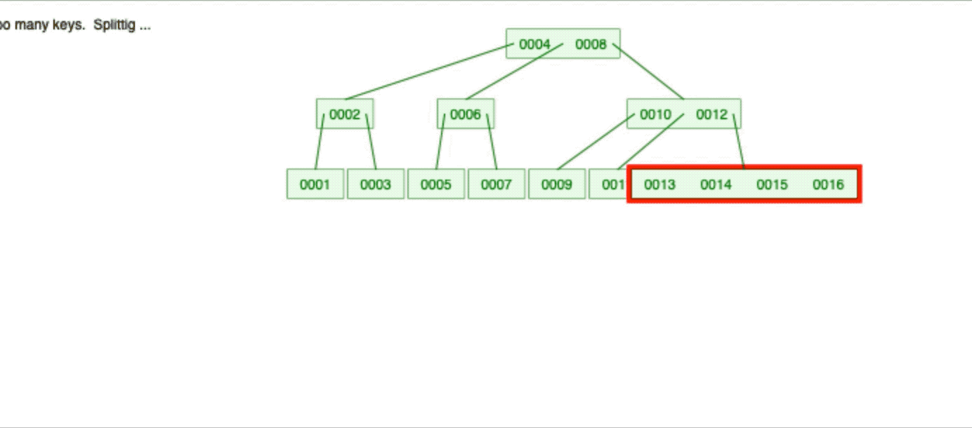 - 这两个子节点的元素个数,必然都不会低于最低限制(ceiling(m/2) - 1)