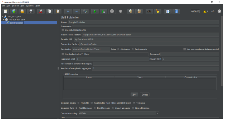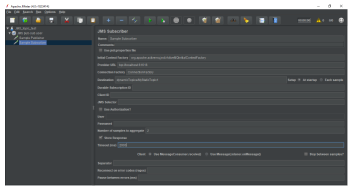 现在编写一个JMeter测试计划来测试JMS提供程序。对于此测试,我们必须创建一个订阅者和一个发布者。