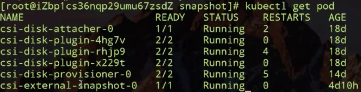 再看一下,我已经提前把我需要的插件已经布好了,一个是 snapshot 插件 ( csi-external-snapshot ) ,一个是动态云盘的插件 ( csi-disk ) 。