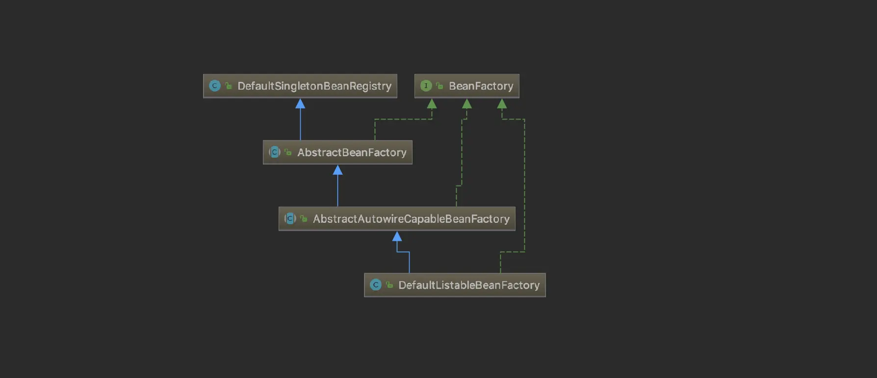 上面的类继承图是我简化过的,其实真正的Spring的BeanFacotory类泛化体系远比此复杂多。