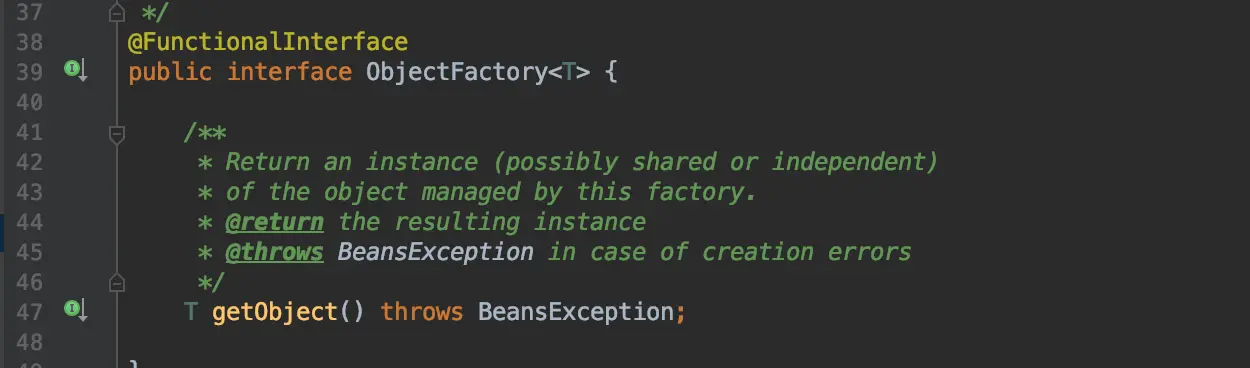 AbstractBeanFactory的doGetBean(246),F8接着跟到315行 第二个参数是个函数式接口 -