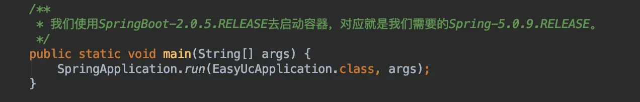 * 使用SpringBoot-2.0.5.RELEASE去启动Spring容器,对应就是需要的Spring-5.0.9.RELEASE。