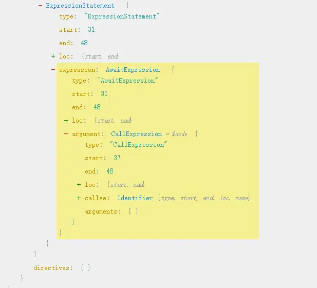 这个包可以将文件转换为 AST 抽象语法树,那么如何找到对应的 await 表达式呢?