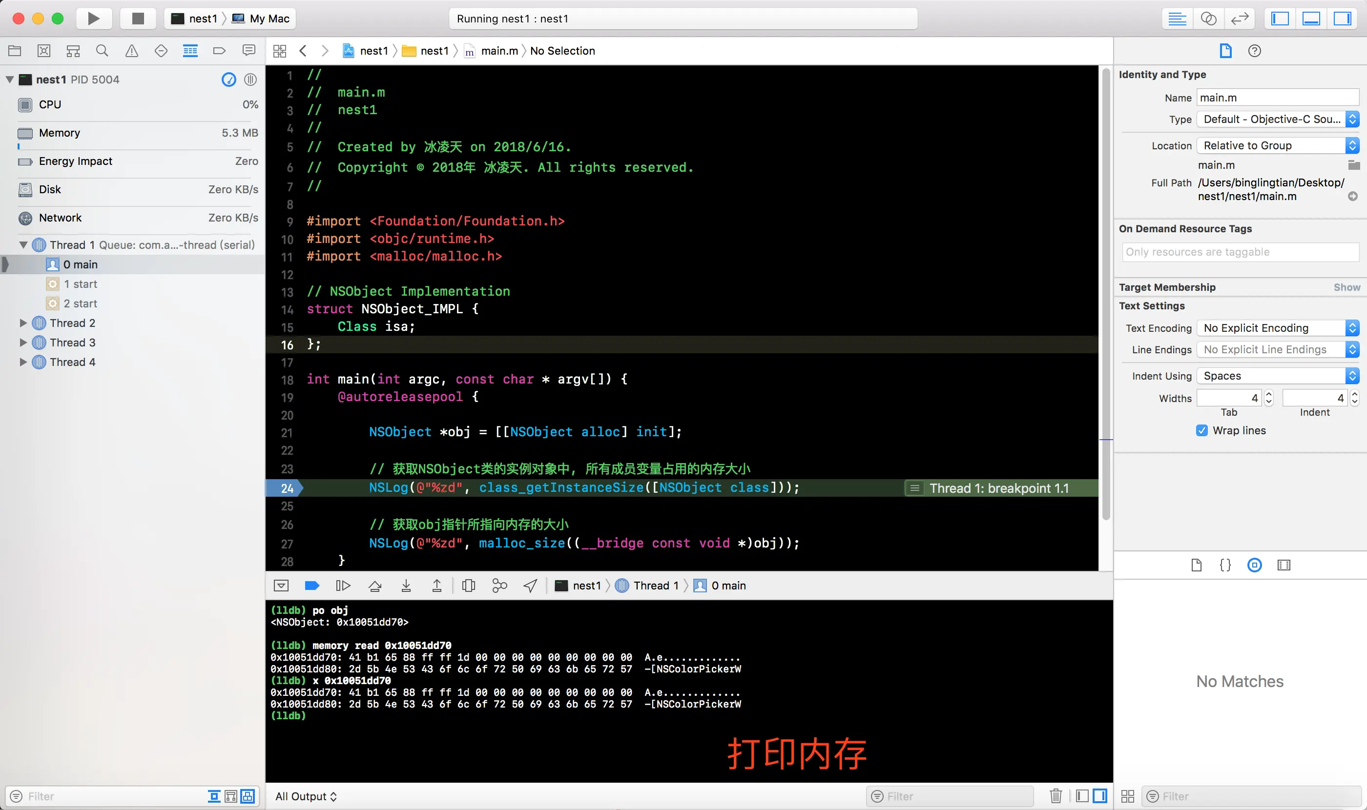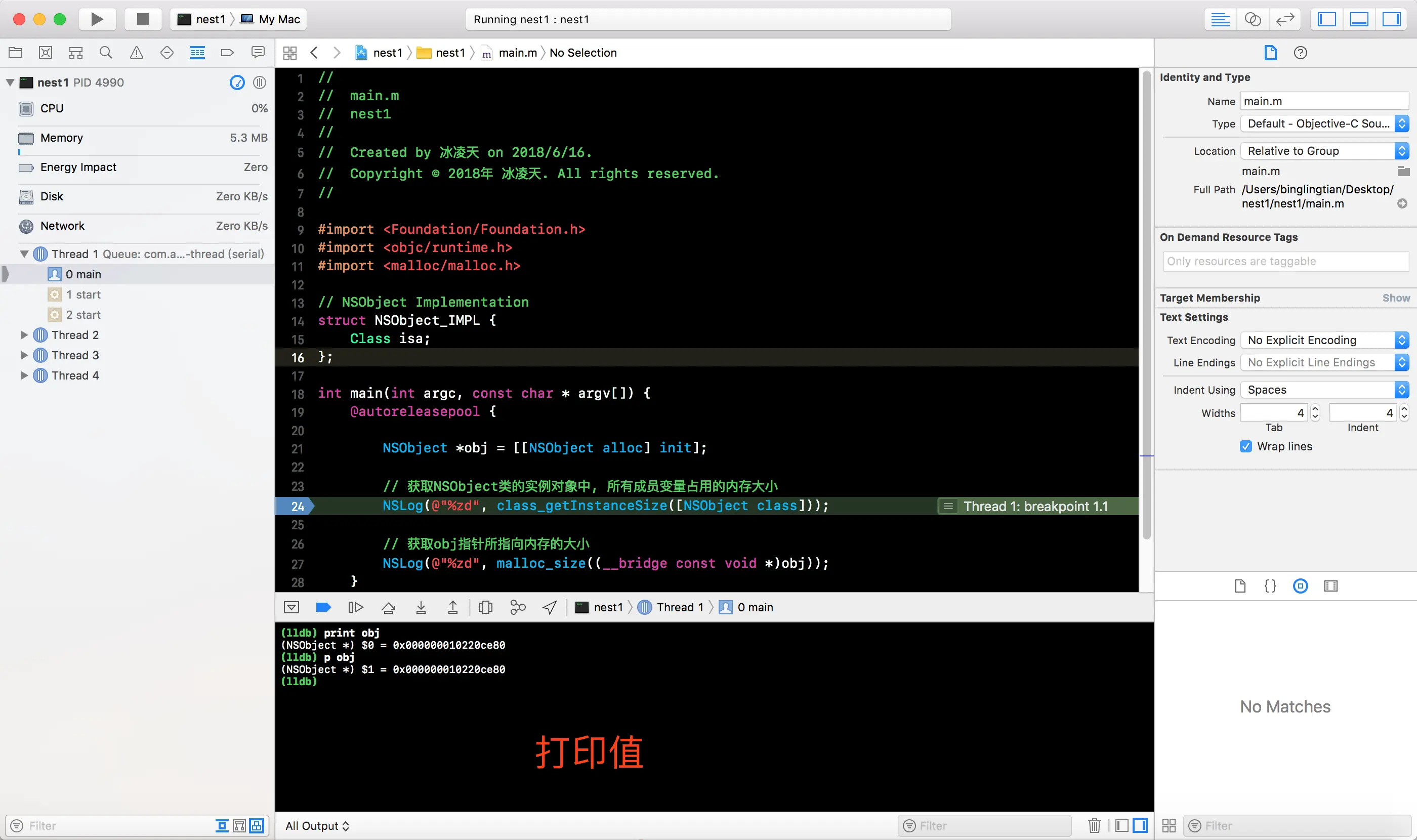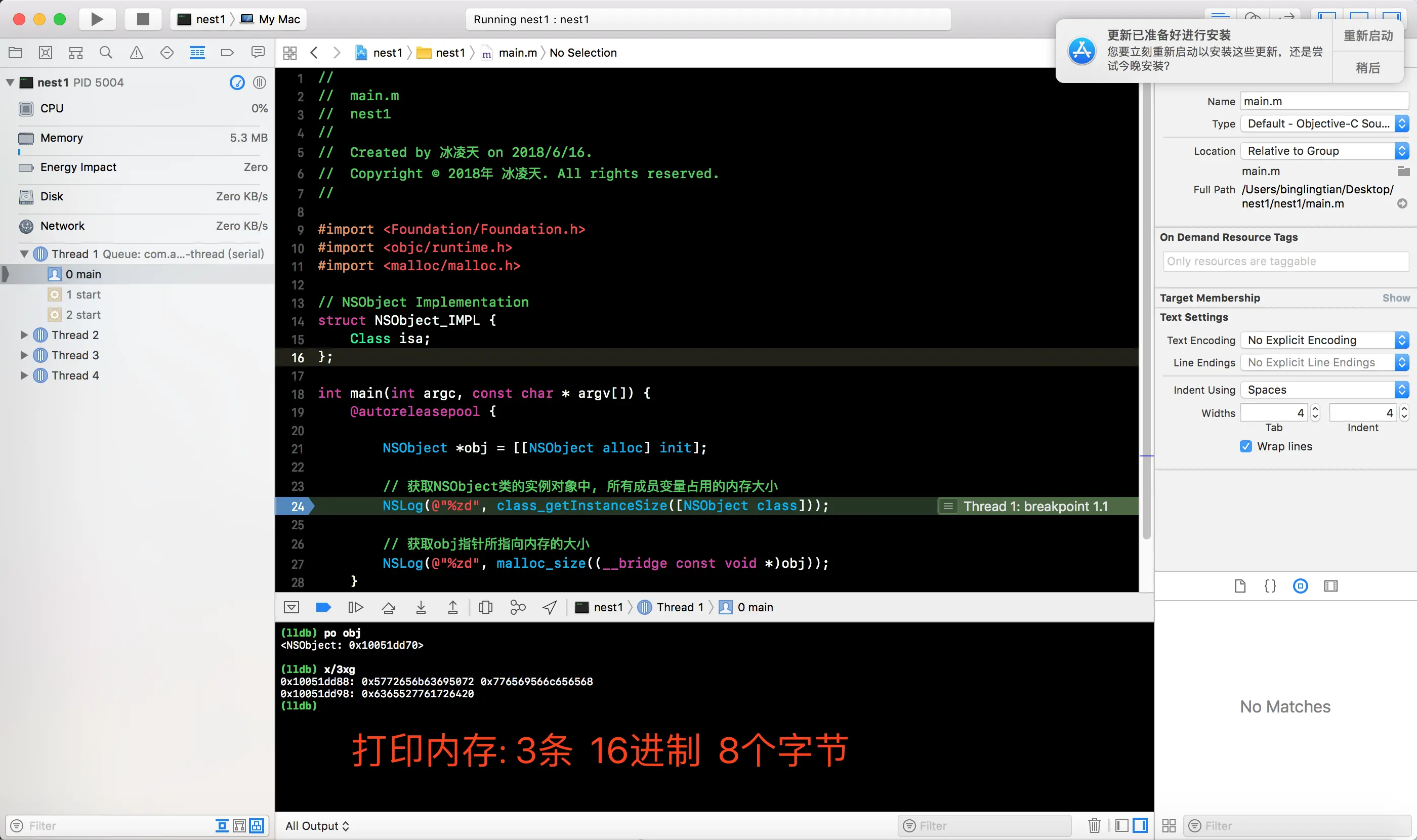 NSObject对象所占用内存的大小
