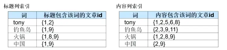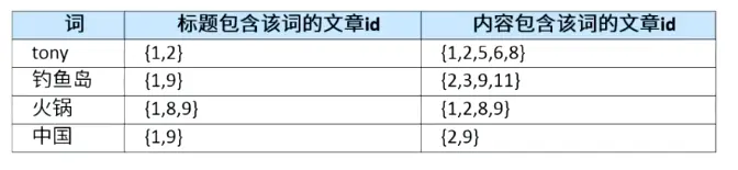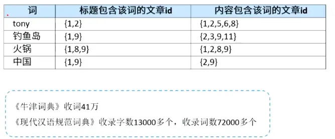 分析:我们查询时,输入的是‘钓鱼岛是中国的’,想要得到标题或者内容中包含的新闻列表。如何做,可以快速找到‘钓鱼岛’的文章id,包含‘中国’的文章id?