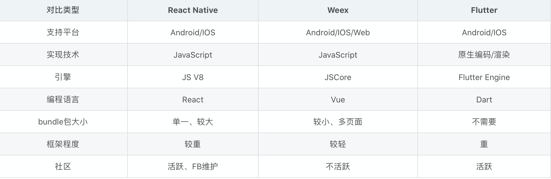 从性能方面来说,Flutter 的性能理论上是最好的,RN和Weex次之,并且都好于传统的 WebView方案