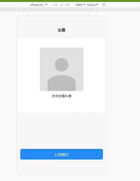 1.初始页面如下,点击中间默认头像触发input:file点击,弹出选择文件框.