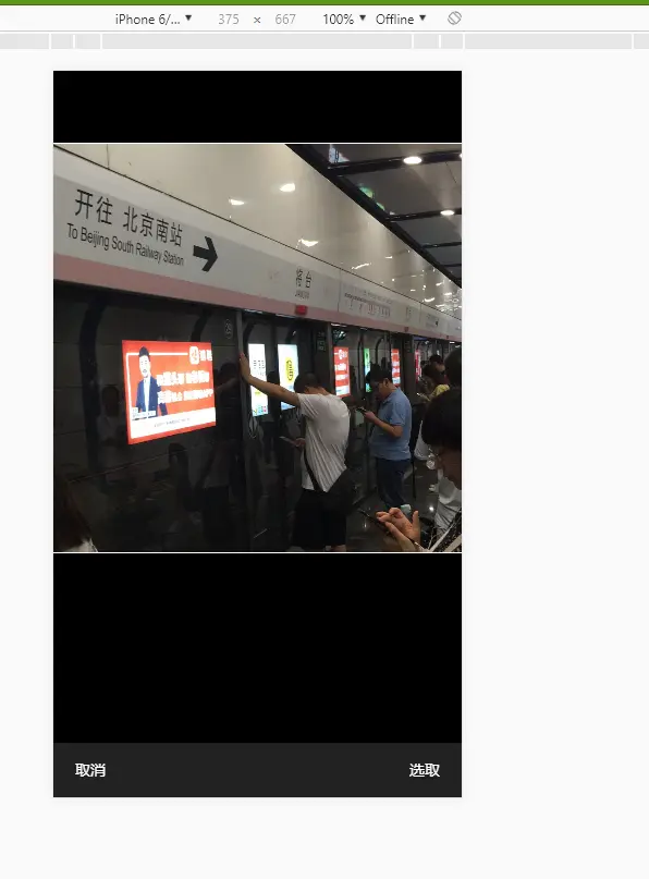 3.此时图片的高度大于宽度,因此可以上下滚动,选择想要裁剪的范围,然后点击选取(下图从地铁导航处开始裁剪)。