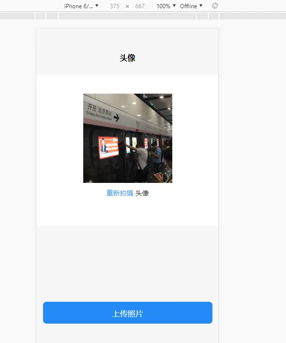 此时,已经裁剪到正方形图片,可以重新拍摄或者上传给后台。
