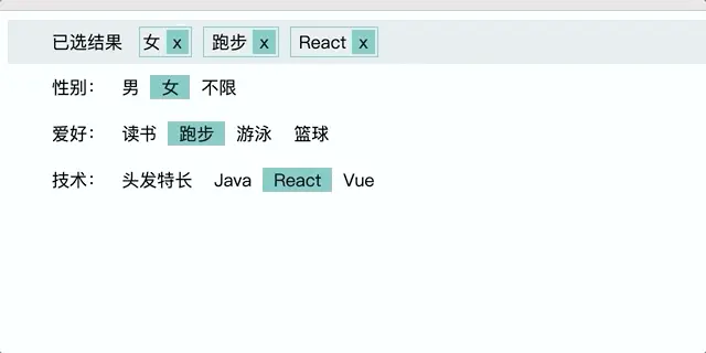 - 在全选状态下,取消选中其中一个子项,取消全选,全部子项选中时,全选选中