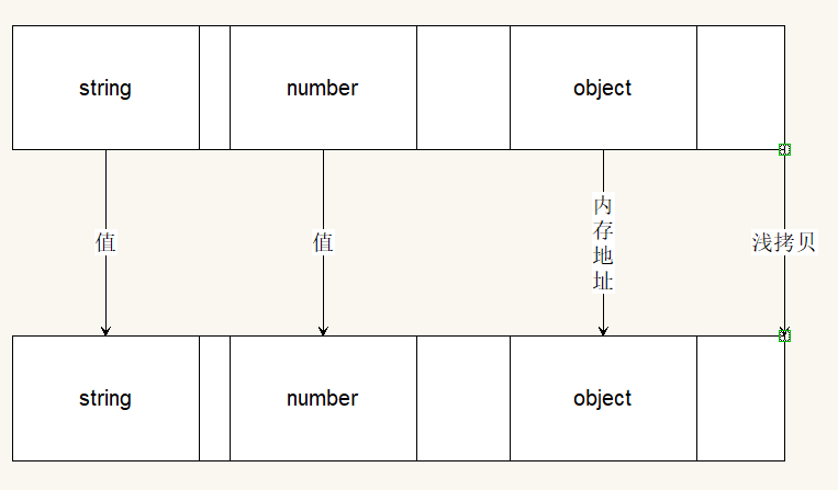 浅拷贝:将内存中的某个对象复制一份,在内存中开辟一块新的空间,如果复制的这个对象的属性为基本数据类型