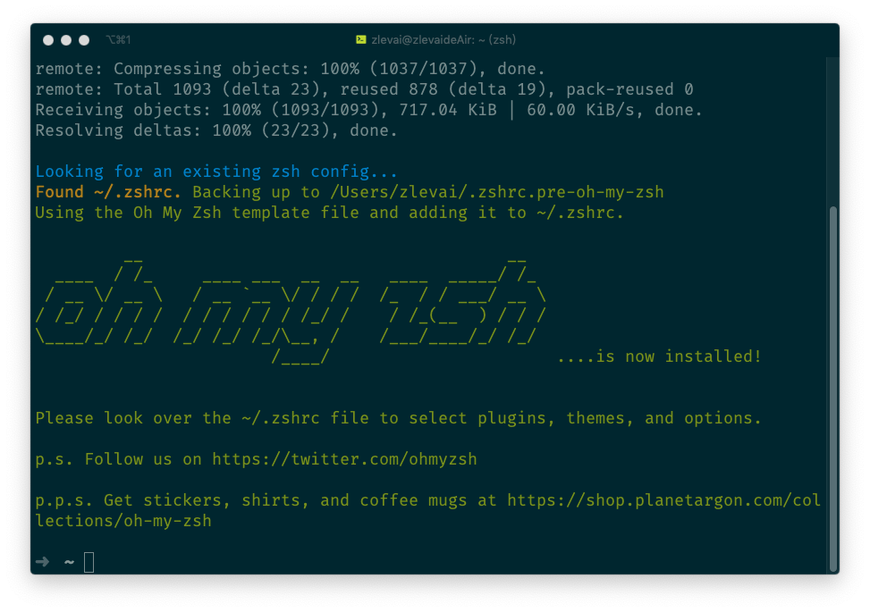 git clone git://github.com/robbyrussell/oh-my-zsh.git ~/.oh-my-zsh