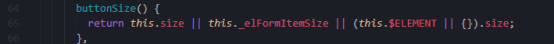 首先,从主文件button.vue上可以知道组件的尺寸由buttonSize决定