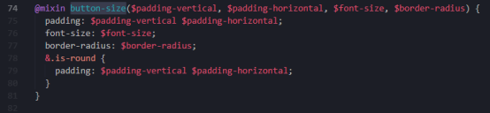 接着我们看看里面的定义。首先,调用了button-size()用了此方法定义在_button.scss中
